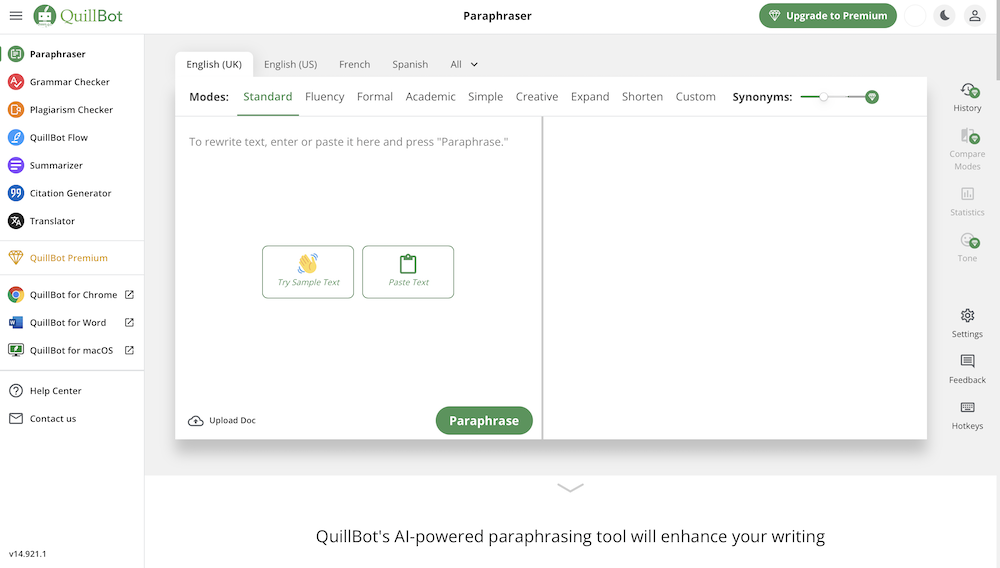 For those moments when you need a little extra help refining your writing, QuillBot has your back. Whether you’re paraphrasing, checking grammar, or generating content from scratch, QuillBot’s AI-powered tools elevate your writing game. Perfect for students, writers, and English language learners alike, QuillBot is your go-to resource for enhancing your writing skills.