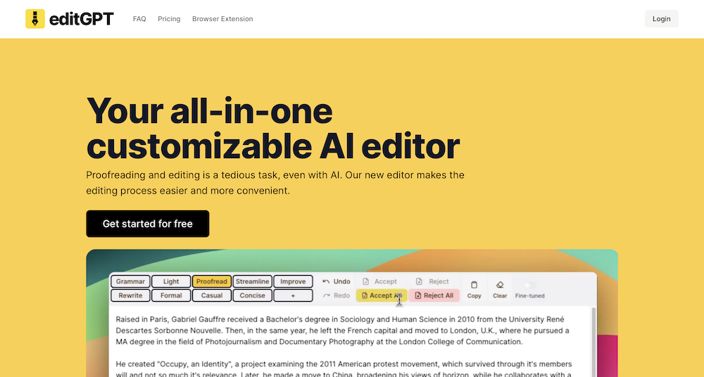 Proofreading and editing your content has never been easier, thanks to EditGPT. With features like change tracking, grammar suggestions, and clarity improvements, EditGPT ensures your writing is polished to perfection. Whether you’re fine-tuning an essay or crafting a professional report, EditGPT is your trusted editing companion.